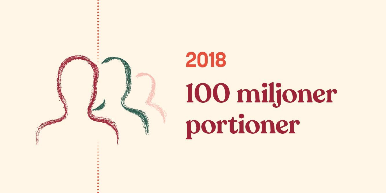 Sedan starten har vi levererat 35 miljoner vegetariska portioner till våra kunder. Från 2022 går det att välja bland 20 vegetariska recept per vecka varav fem är veganska.