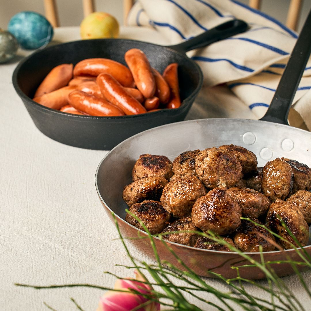 Vi har fyllt årets påskkasse med omsorgsfullt utvalda råvaror – många med ursprung i Sverige. Totalt ingår elva rätter med allt du behöver för ett komplett påskbord!
